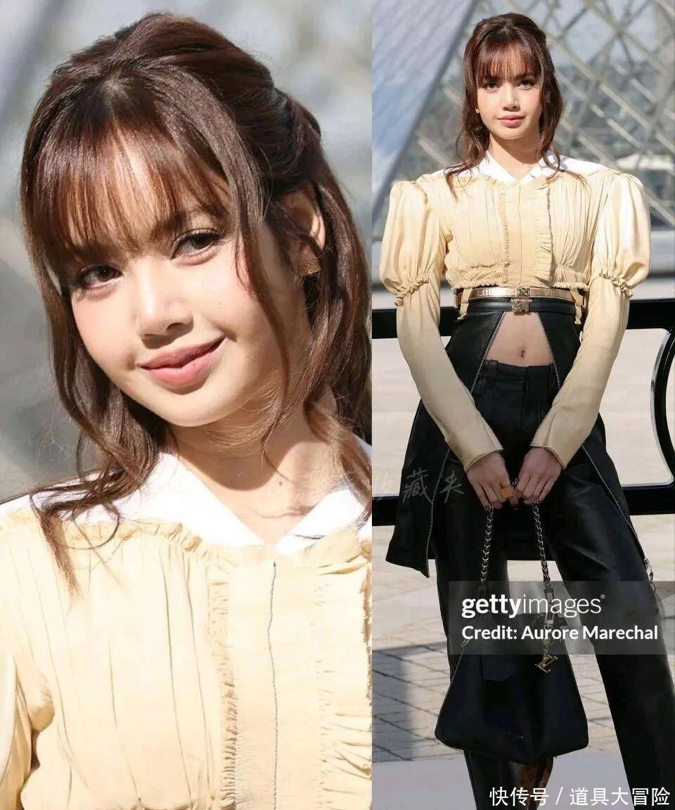 Lisa、全智贤也来了。Lisa宫廷上衣配皮裤,半扎马尾显脸圆肩宽。
