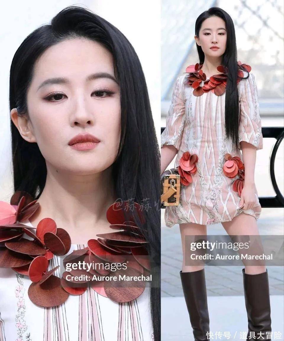 说回正题。刘亦菲一袭红色立体花瓣短裙,黑长直披肩。外媒称她"行走的玫瑰",冷艳夺目。