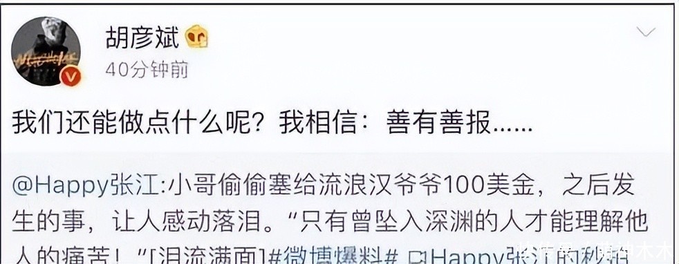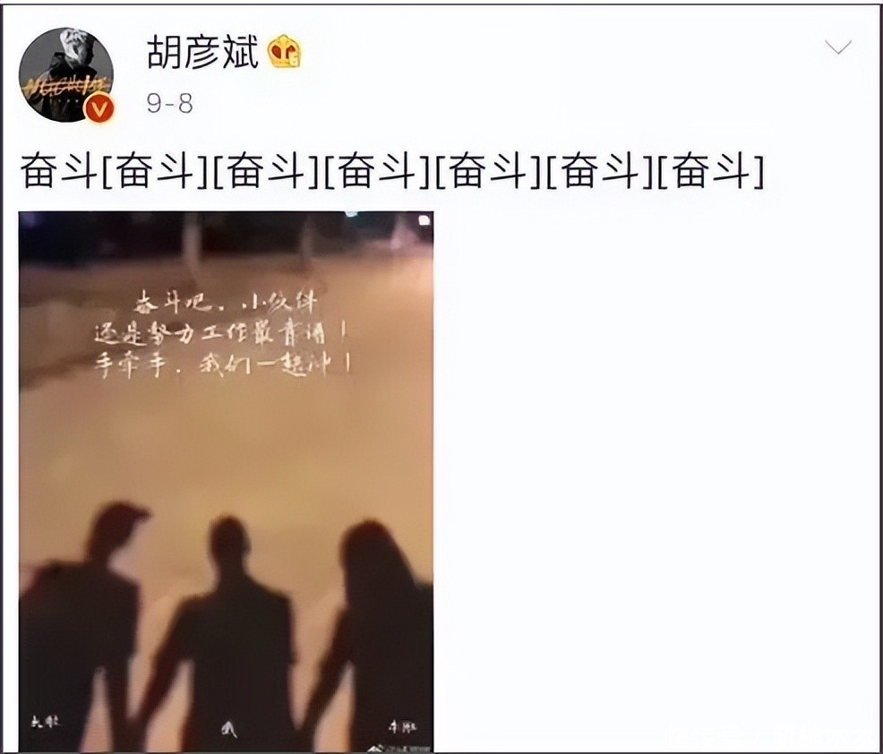 在这之后,胡彦斌遇到薛之谦的事儿似乎格外在意。薛之谦公布和高磊鑫的感情,胡彦斌用原图P三人合影说好好努力工作才是正经事。隔日胡彦斌又发文“善有善报”,也被视为是内涵薛之谦。