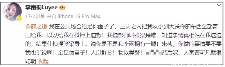 先来说张杰的事儿,李雨桐爆料薛之谦私下吐槽“张杰唱歌土”,引来谢娜长篇作文怒撕,让他为当年节目上内涵张杰赘婿的言论道歉。